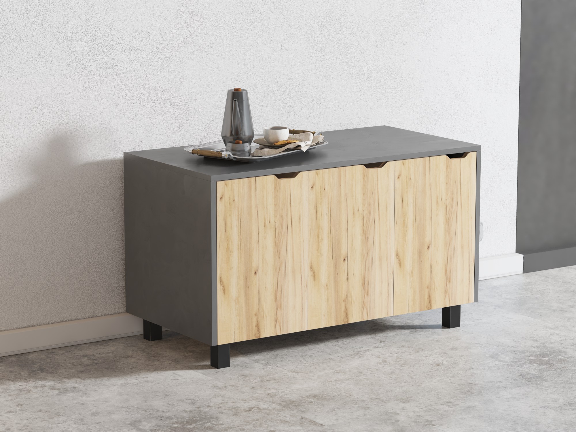 Dzięki swojej funkcjonalności komoda ta doskonale sprawdzi się w przechowywaniu różnorodnych rzeczy - od segregatorów biurowych po drobne przedmioty codziennego użytku. Zastosowane materiały gwarantują trwałość i łatwość w utrzymaniu czystości, co sprawia, że jest to nie tylko eleganckie, ale również praktyczne rozwiązanie do Twojego wnętrza.