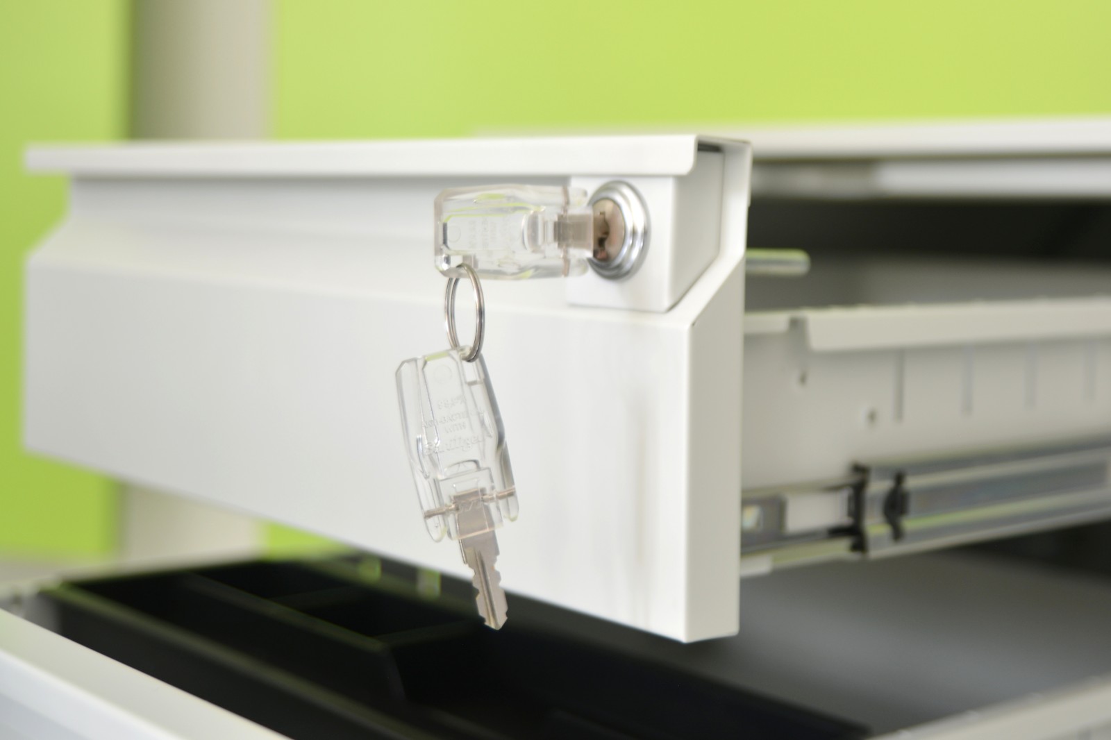Do takich celów niezbędnikiem jest kontenerek na kółkach z zamkiem ograniczającym dostęp
