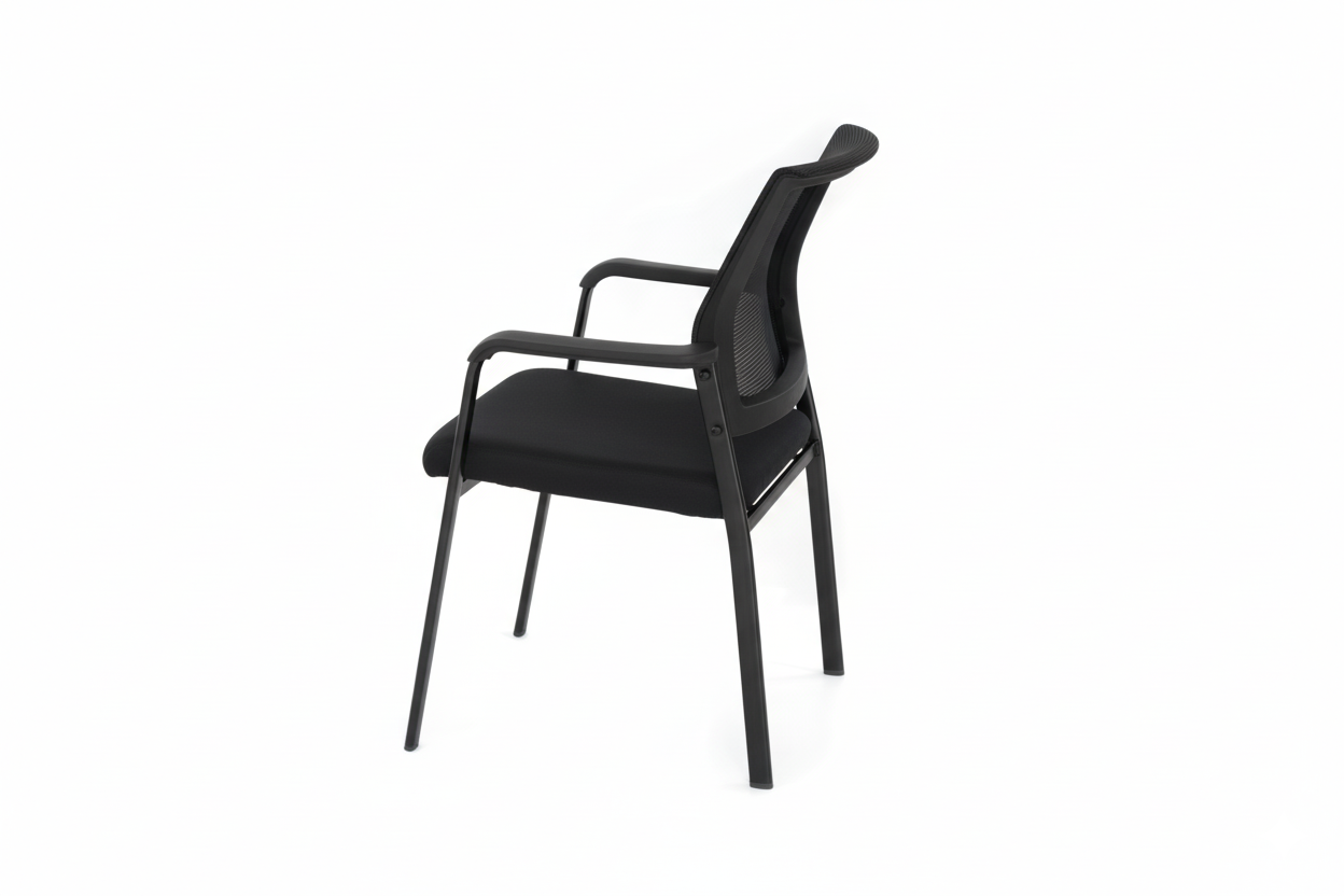 Klasyczna postura krzesła oparta została na 4 solidnych nogach W które wbudowano popularnej Budowy siedzisko w ergonomicznym kształcie z praktyczną w części grzbietowej siatką poliestrową pozwalającą oddychać skórze.