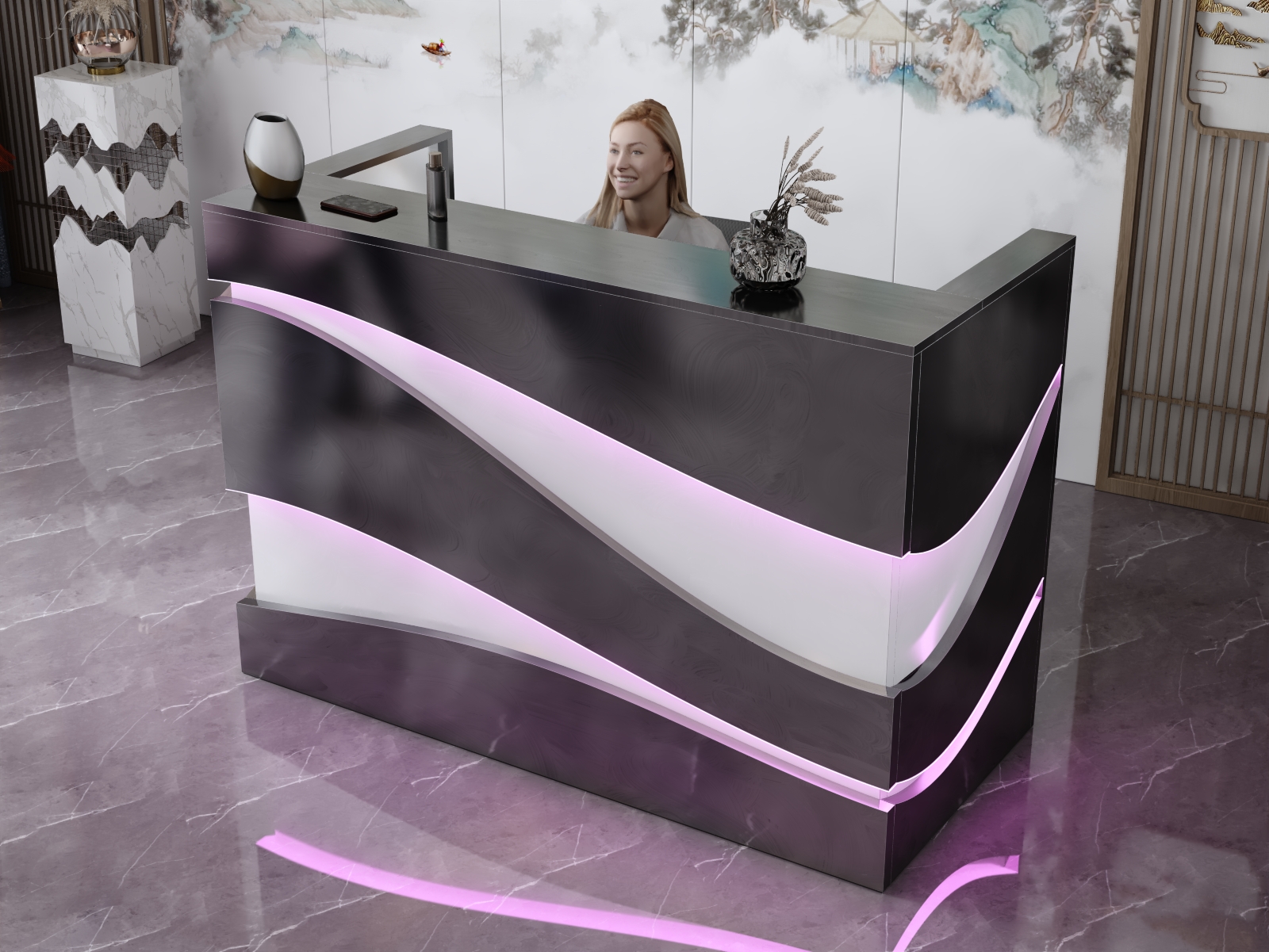 Strona główna » Lady recepcyjne » Lada recepcyjna R79 gotowe wzory i wymiary » Lada recepcyjna R79 LED 180x80cm art_790005