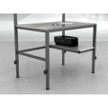 Wysokiej jakości stół warsztatowy do pakowania paczek wykonany z profili metalowych spawanych w stabilną bryłę.