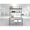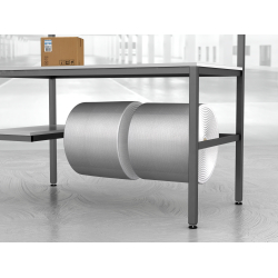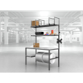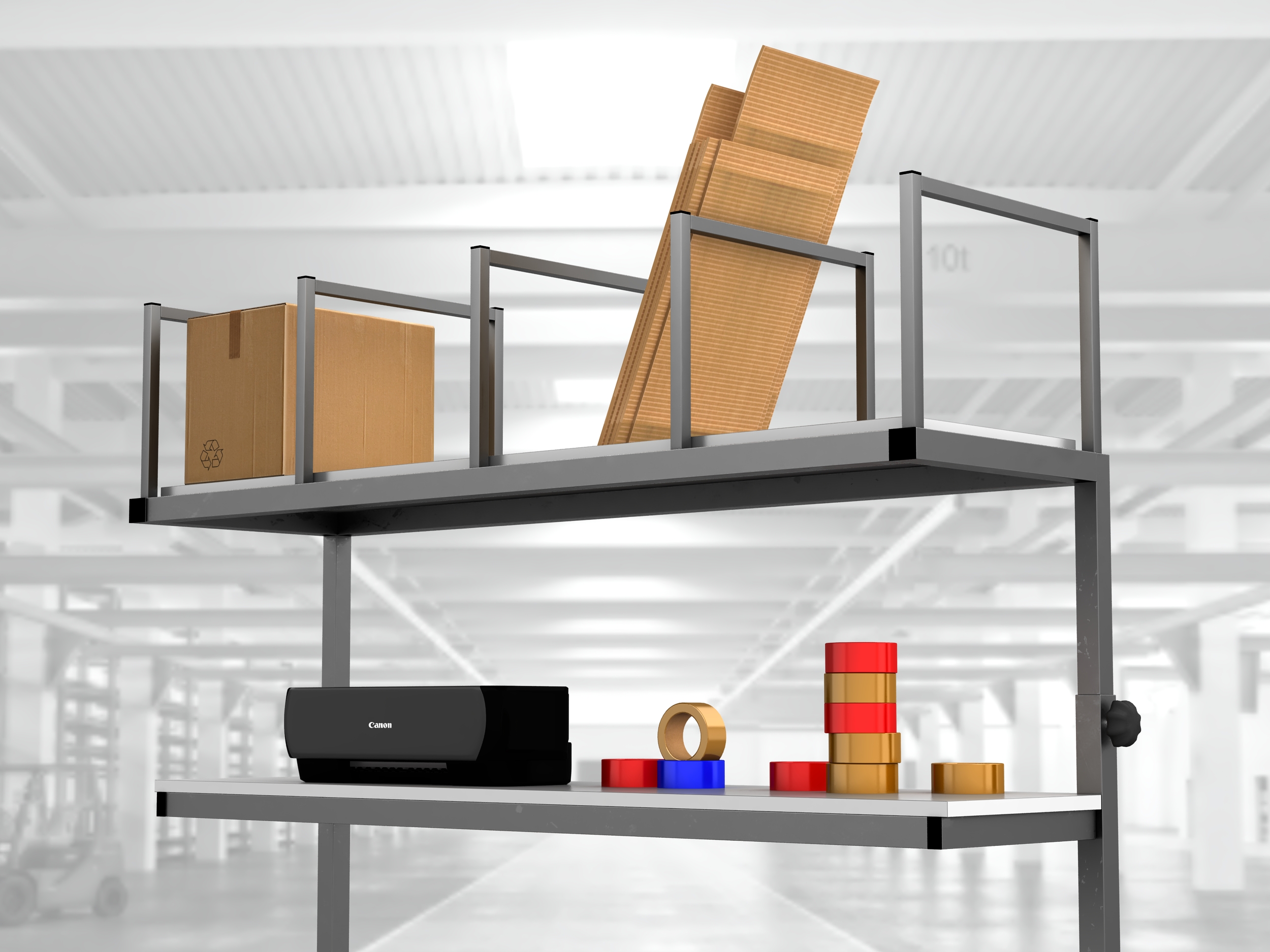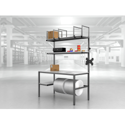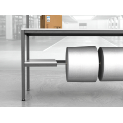 Wysokiej jakości stół warsztatowy do pakowania paczek wykonany z profili metalowych spawanych w stabilną bryłę.
