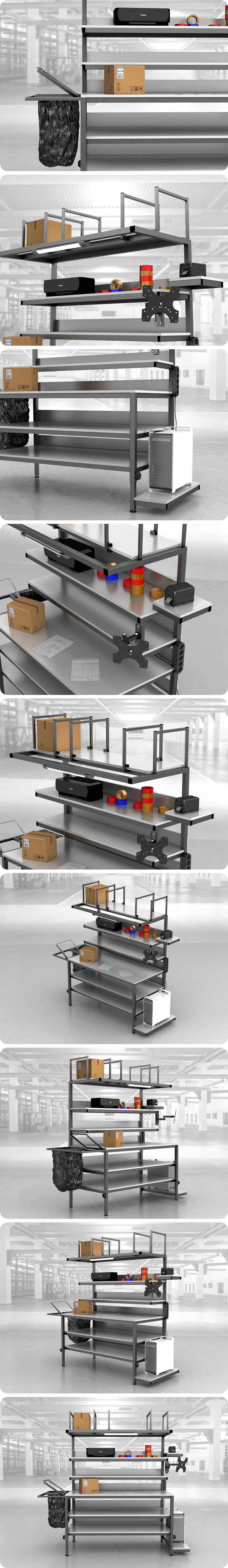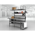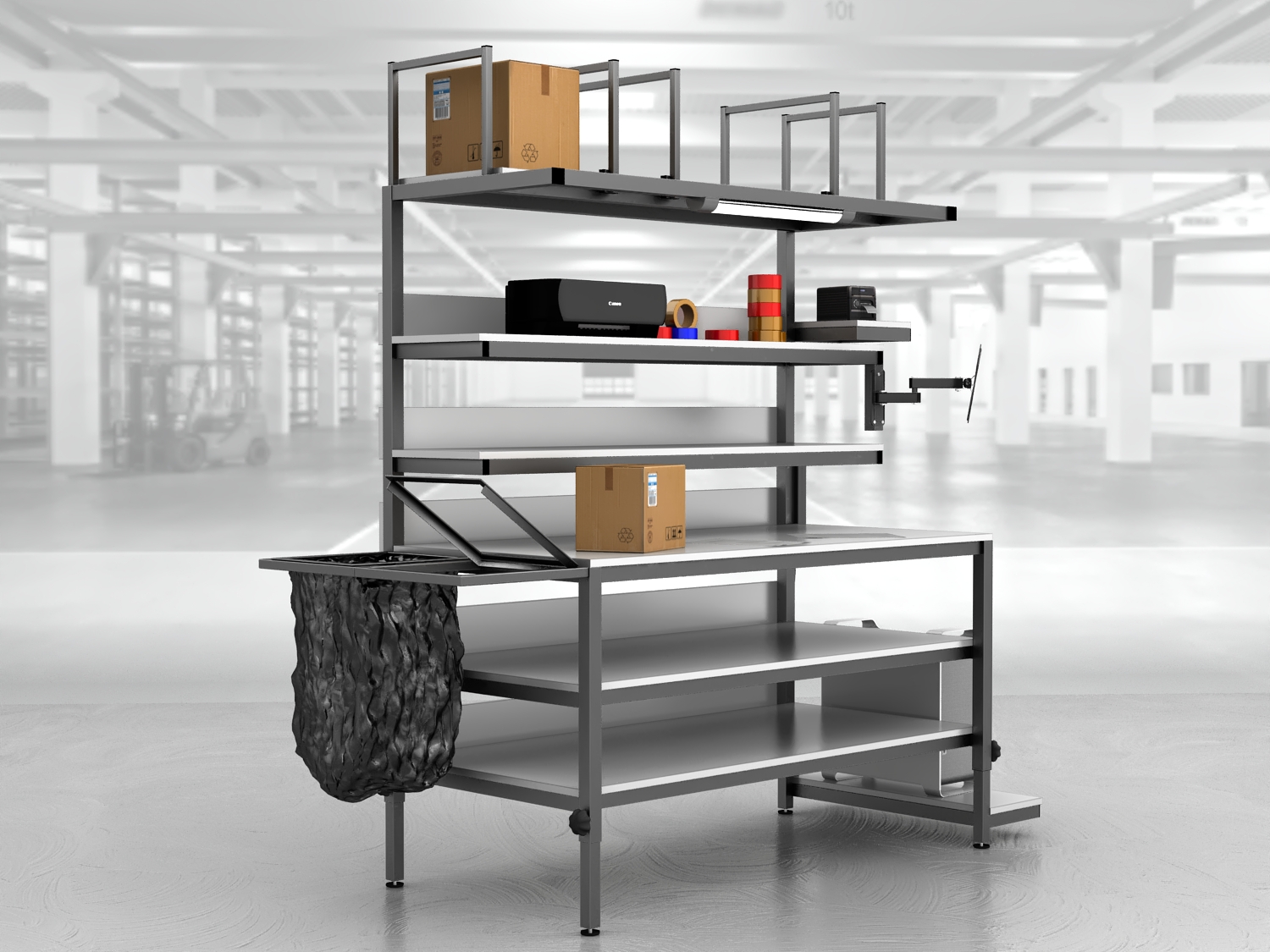 Wysokiej jakości stół warsztatowy do pakowania paczek wykonany z profili metalowych spawanych w stabilną bryłę.